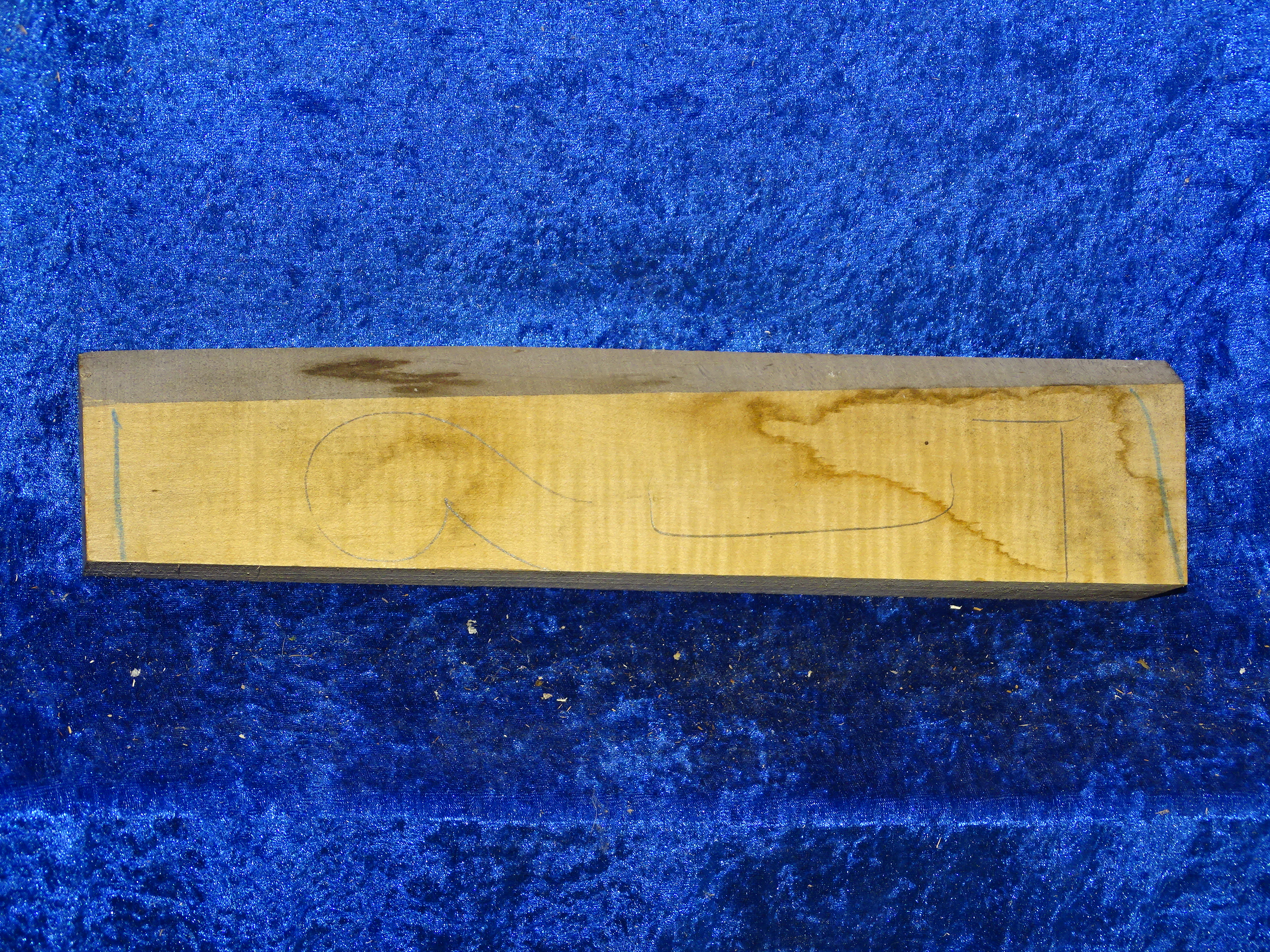 Alter, super geflammter Ahorn für einen Geigenhals!!!!! super feinjährig, Maße ca. 37 cm x min 7,8 cm x 5,3 - 3,7 cm Höhenholz!!! schöne Jahreringe, stammt vermutlich aus Bosnien und min 20 Jahre alt!!! klasse Halskantel!!