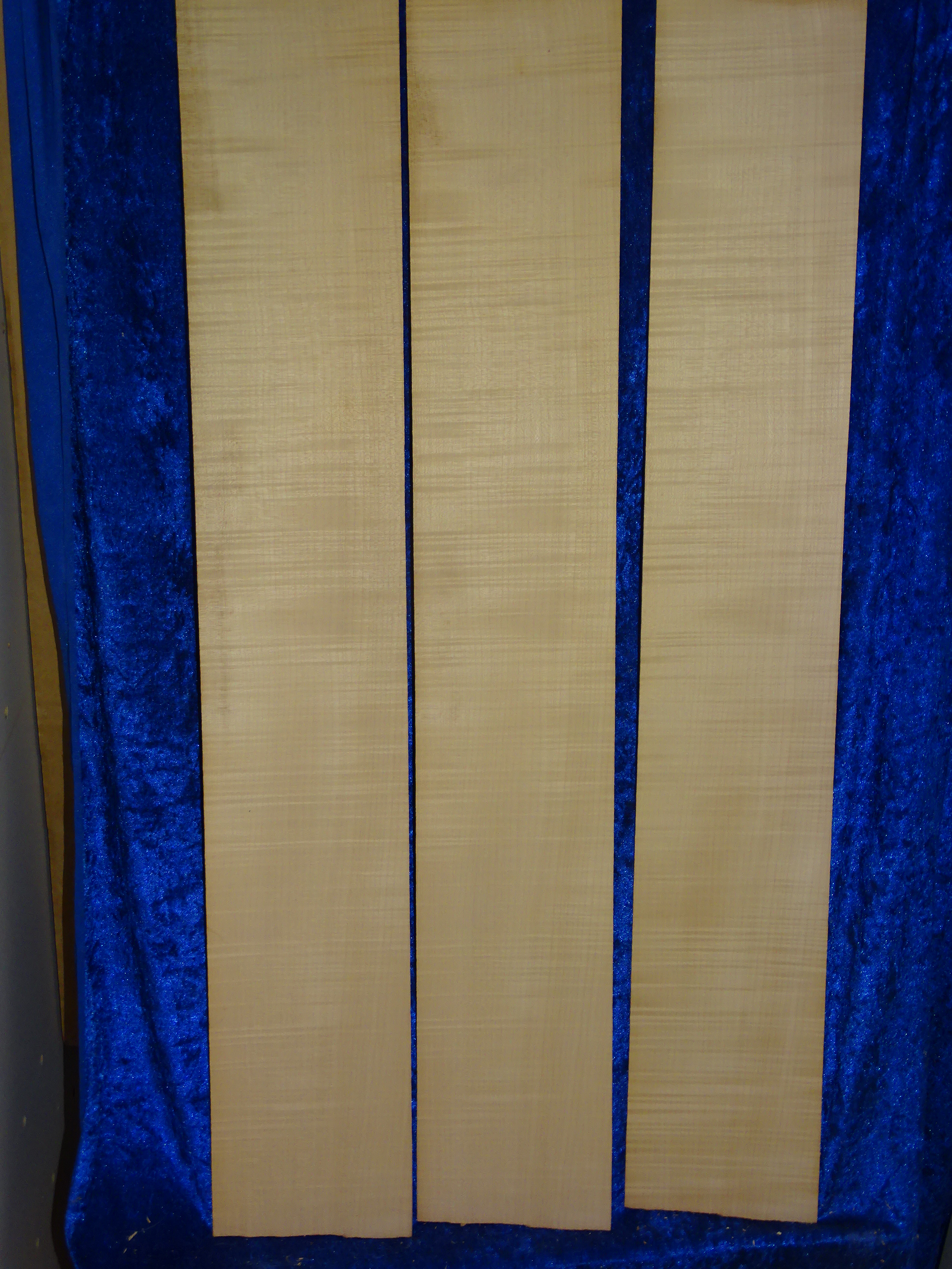 Aus Nachlass: Super geflammte Cellozargen, vermutlich aus Bosnien, sind von ca 2000, Maße jeweils min ca. 83 cm x 13,7 cm x 0,18 cm (3 Stück) Höhenholz!!! sehr schöne Jahresringe!!!