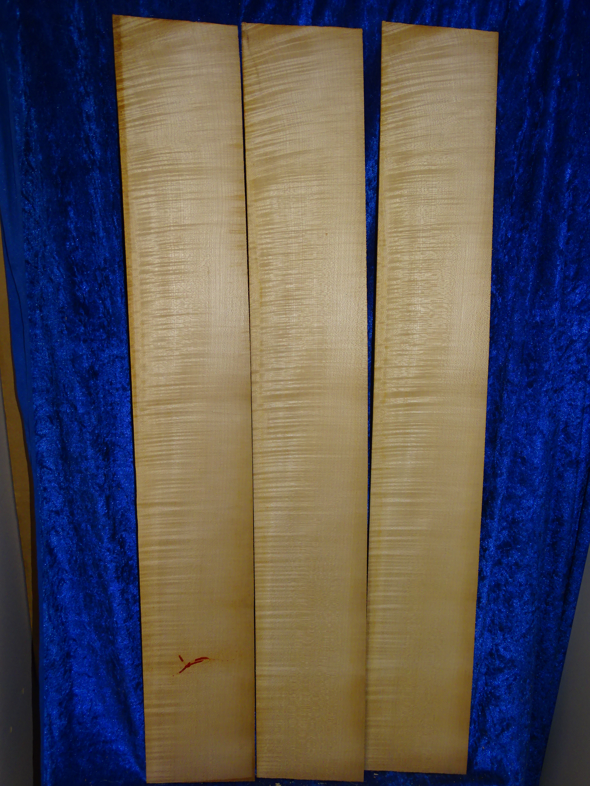 Aus Nachlass: Super geflammte Cellozargen, vermutlich aus Bosnien, sind von ca 2000, Maße jeweils min ca. 89 cm x 13,7 cm x 0,3 cm (3 Stück) Höhenholz!!! sehr schöne Jahresringe!!!