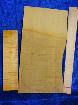 Klasse geflammter Ahornboden für eine 4/4 Geige aus Bosnien, Maße ca. 44 cm x max 23 cm x 2,6 cm. Höhenholz!!! klasse enge Jahre, sehr schöner Boden!! Stammt von 2011!!! mit passender Halskantel und Zargen