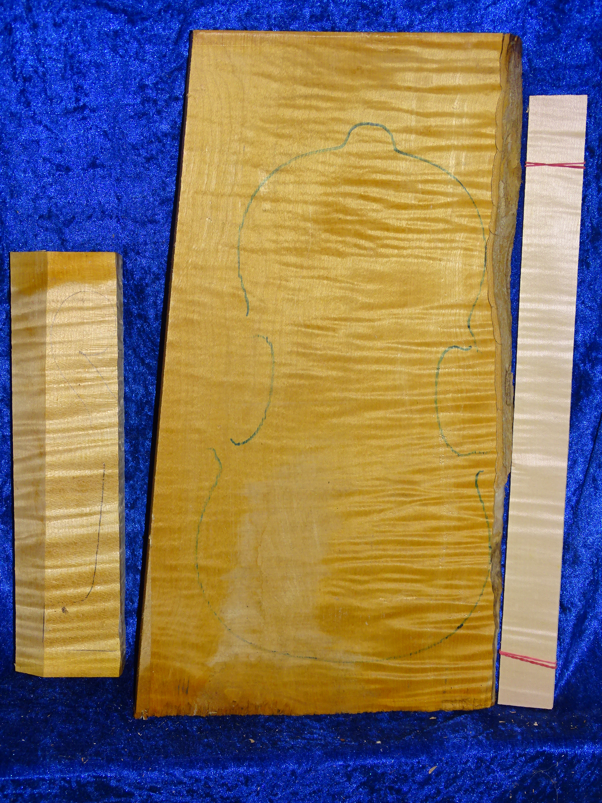 Klasse geflammter Ahornboden für eine 4/4 Geige aus Bosnien, Maße ca. 47,5 cm x max 24,5 cm x 3,38 cm. Höhenholz!!! klasse enge Jahre, sehr schöner Boden!! Stammt von 2012!!! mit passender Halskantel und Zargen