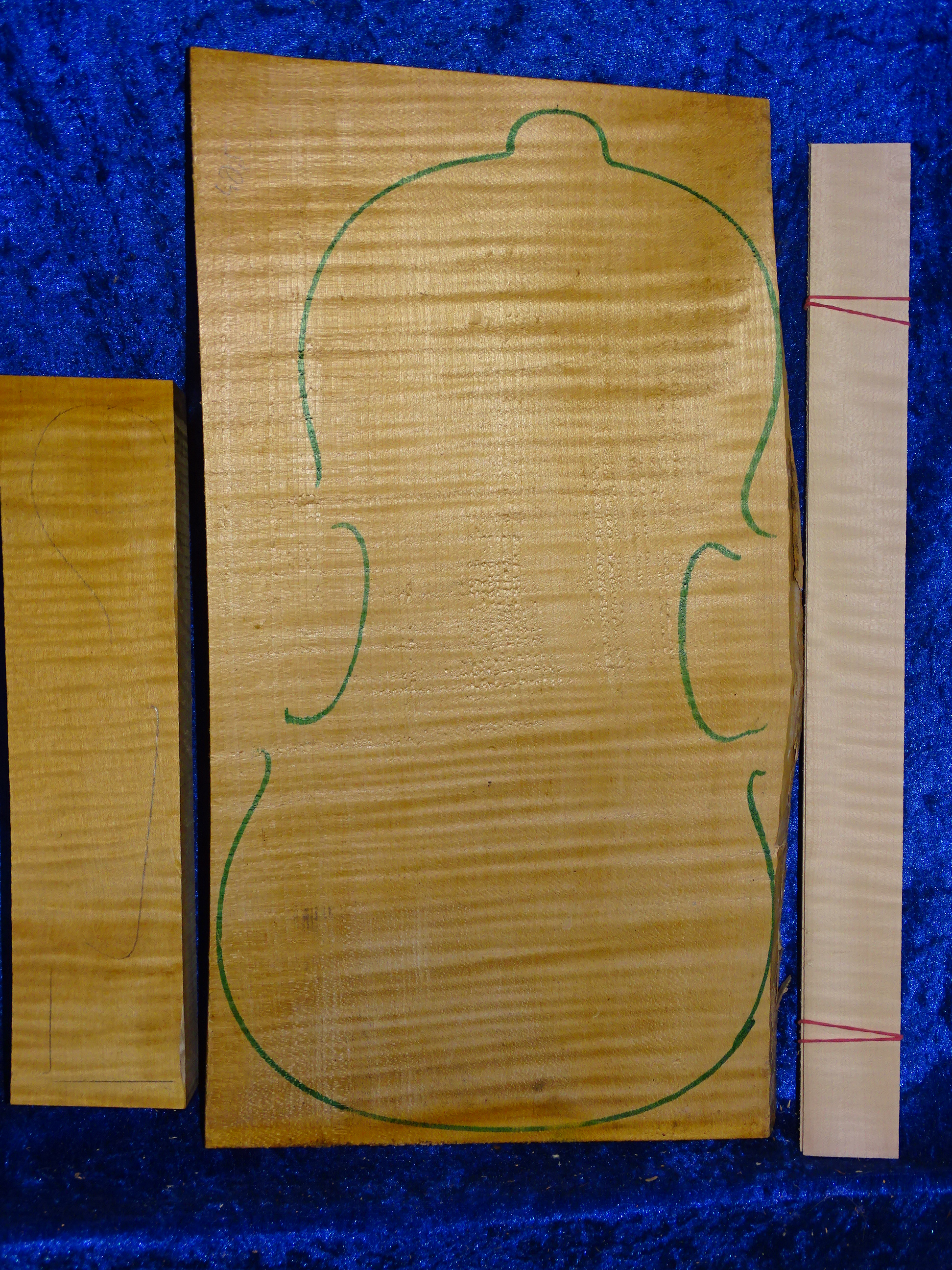 Klasse geflammter Ahornboden für eine Bratsche aus Bosnien, Maße ca. 44,5 cm x max 24 cm x 3 cm. Höhenholz!!! klasse enge Jahre, sehr schöner Boden!! Stammt von 2018!!! mit passender Halskantel und Zargen ,