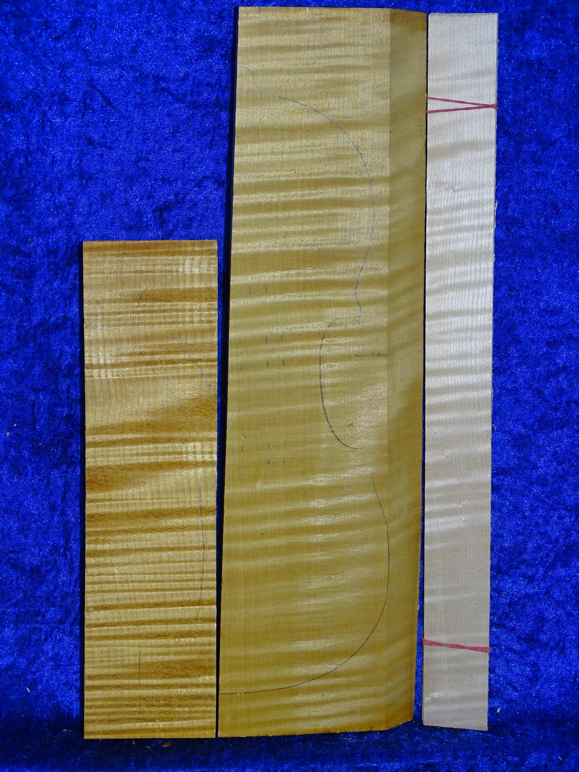 Achtung: sehr schöner geflammter Boden!!! mit Zargen und Halskantel, für eine 4/4 Geige aus Bosnien, Maße  ca. 43  cm x max 11 cm x 4,5 - 1,8 cm.  Höhenholz!!! klasse enge Jahre,  sehr schöner Boden!! Stammt von 2018!!!