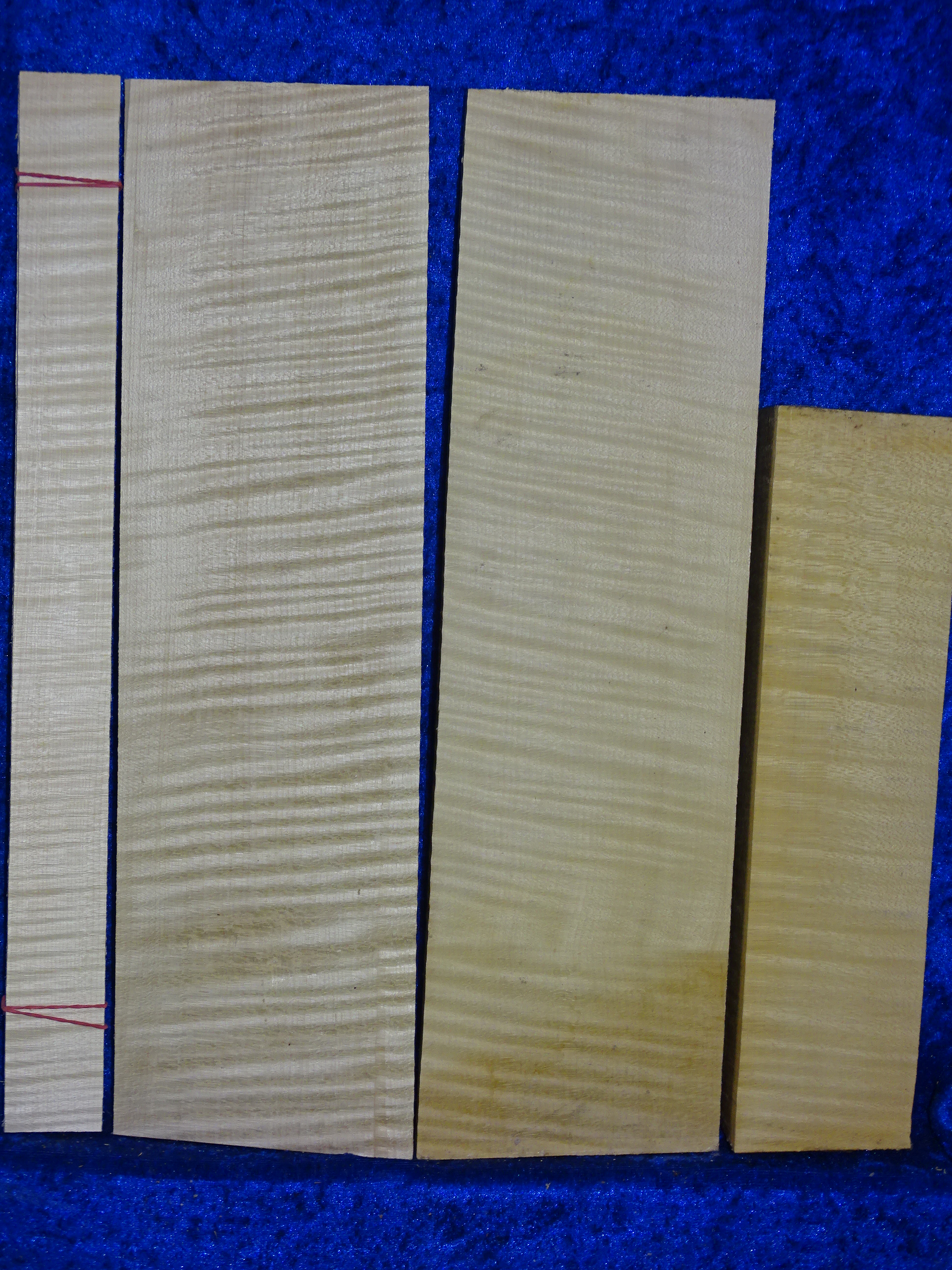 Klasse geflammter Ahornboden für eine 4/4 Geige aus Bosnien, Maße jeweils ca. 43,5 cm x 12,5 cm x 2,3 - 1 cm. Höhenholz!!! klasse enge Jahre, sehr schöner Boden!! Stammt von 2018!!! frisch aufgetrennt
