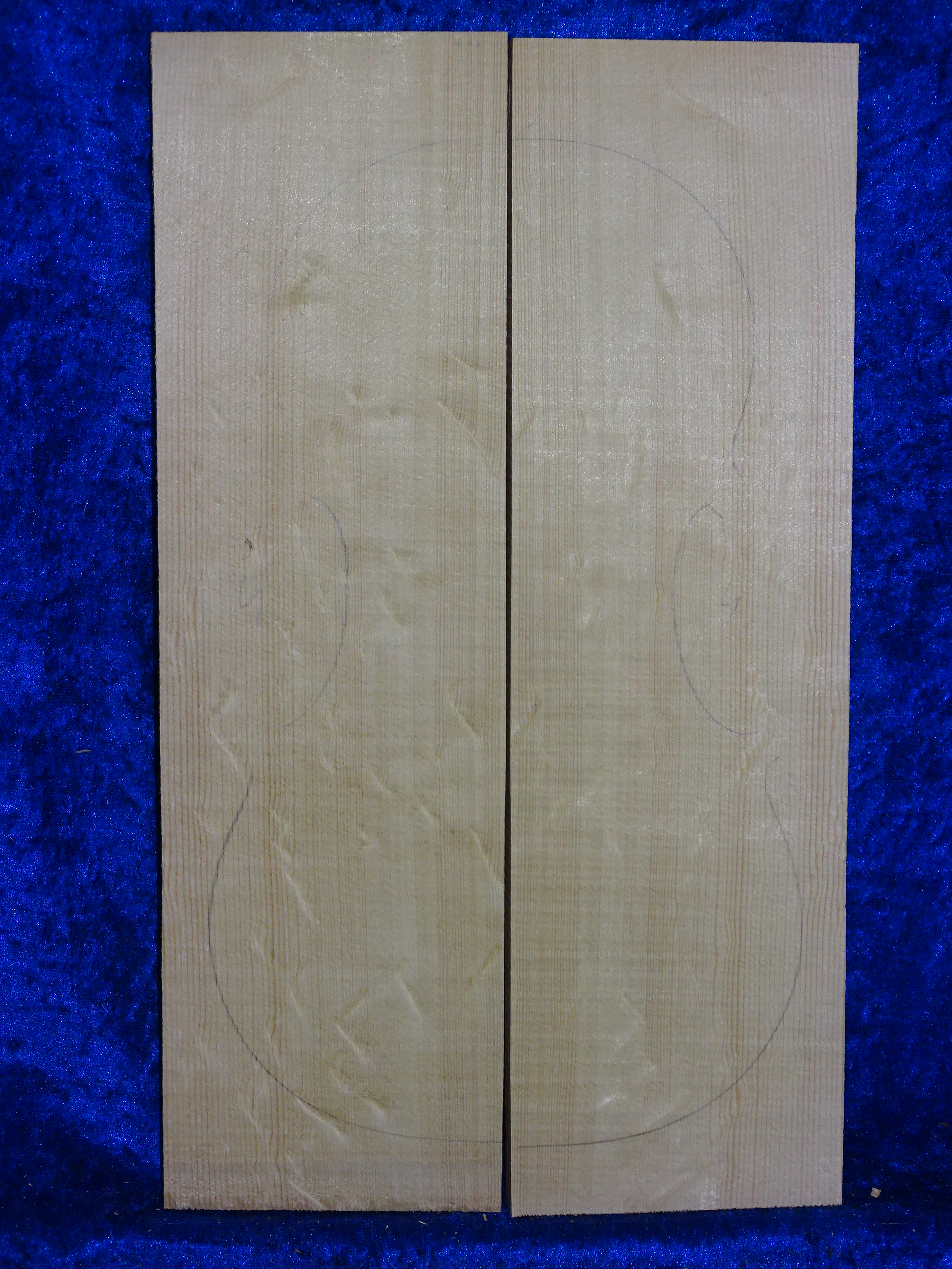Superschöne feinjährige, österreichische Fichtendecke für 4/4 Geige, super enge Jahre, absolutes Höhenholz, stehende Jahre, Maße jeweils ca. 42 cm x 12,3 cm x 1,9 - 1 cm, stammt von 2018, super Decke, Hasel