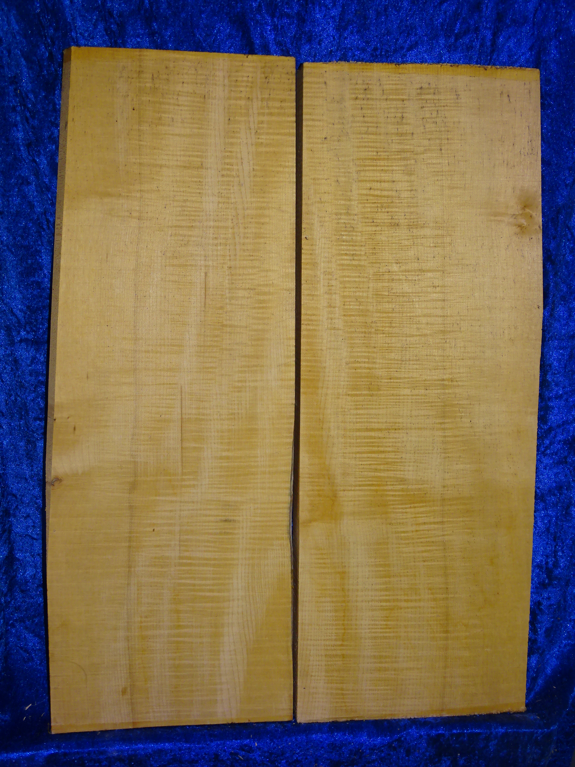 Super geflammter Ahorn für eine Gitarre, stammt aus Österreich, Maße jeweils ca. 66 cm x 24,5 cm x 4,2 - 1,2 cm, Höhenholz, stehende Jahre, klasse Boden, stammt von 2018