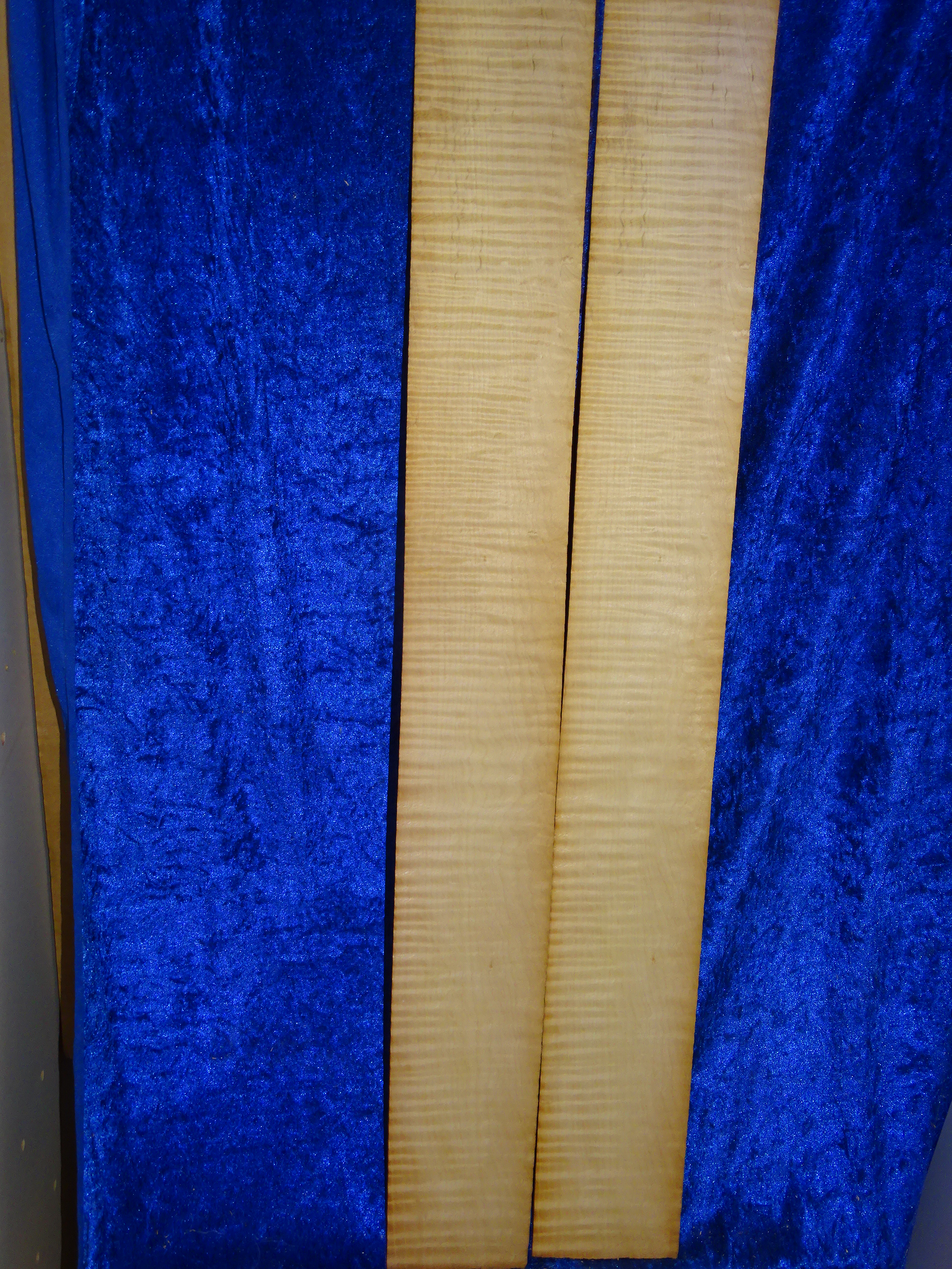 Aus Nachlass: Super geflammte Gitarrenzargen, sind min 40 Jahre alt, Maße jeweils ca. 85,5 cm x min 10 cm x 0,28 cm (2 Stück) Höhenholz!!! sehr schöne Jahresringe!!! geschliffen,
