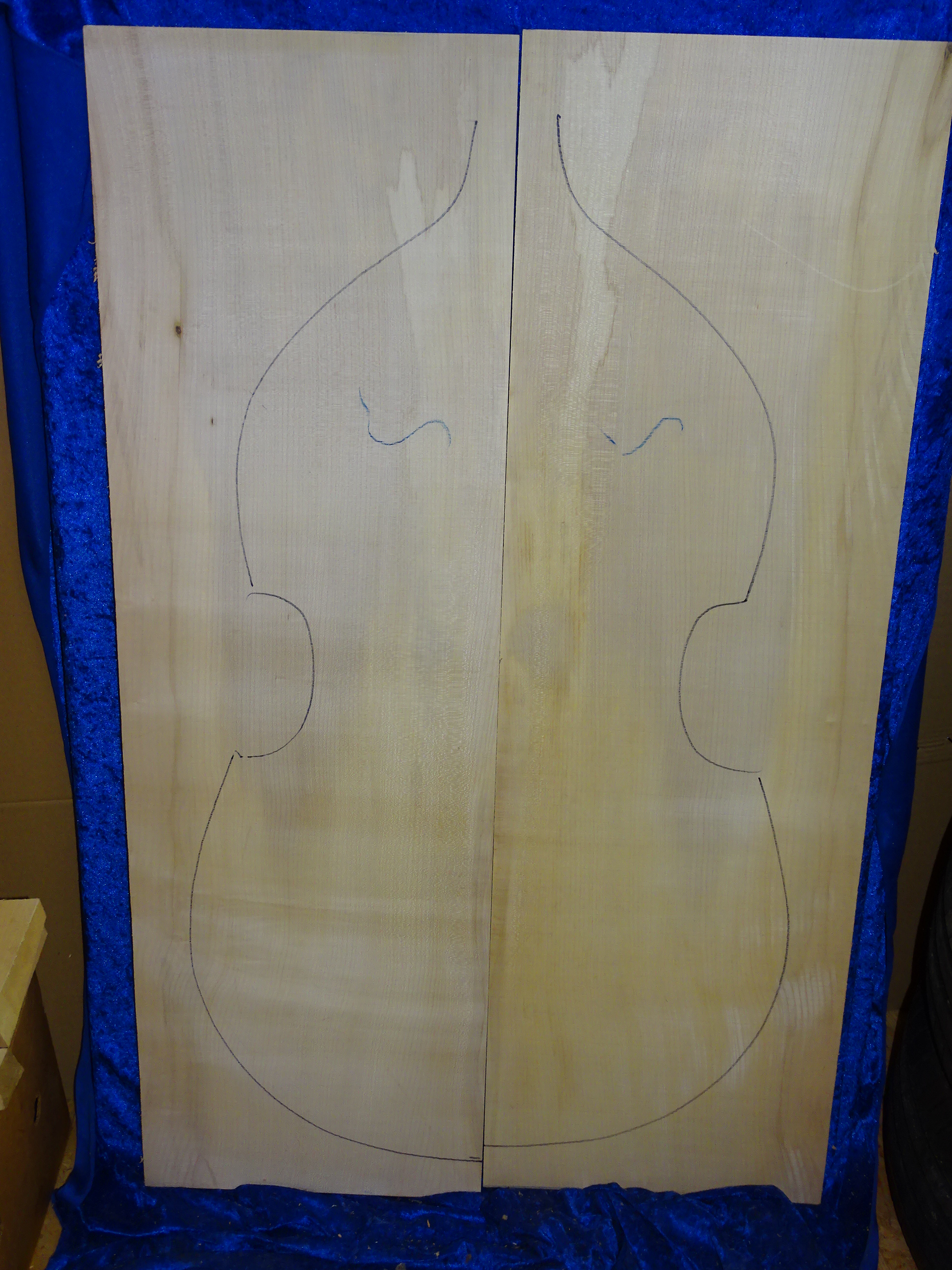 Ahornboden für einen Kontrabass, von 2021!!!!! Maße jeweils ca. 121 cm x max 38 cm x 1,3 cm. absolutes Höhenholz!!! sehr schöne Jahresringe,