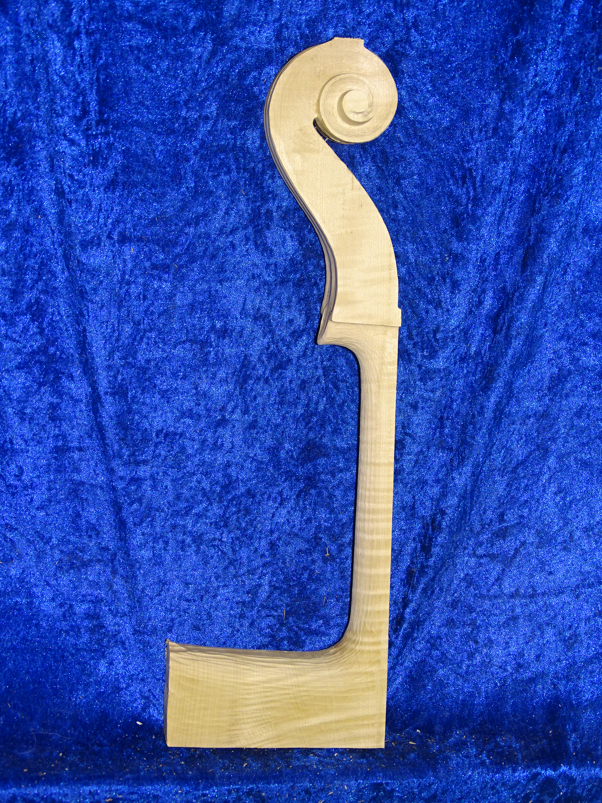 nice flamed 4/4 Cello neck, already carved, wood is min 10 years, new carved, narrow years, from high area, approx. 50 cm x 15,3 cm x 6,5 cm Best cutting for cello! Excellent piece for master!!!! very nice neck!!!