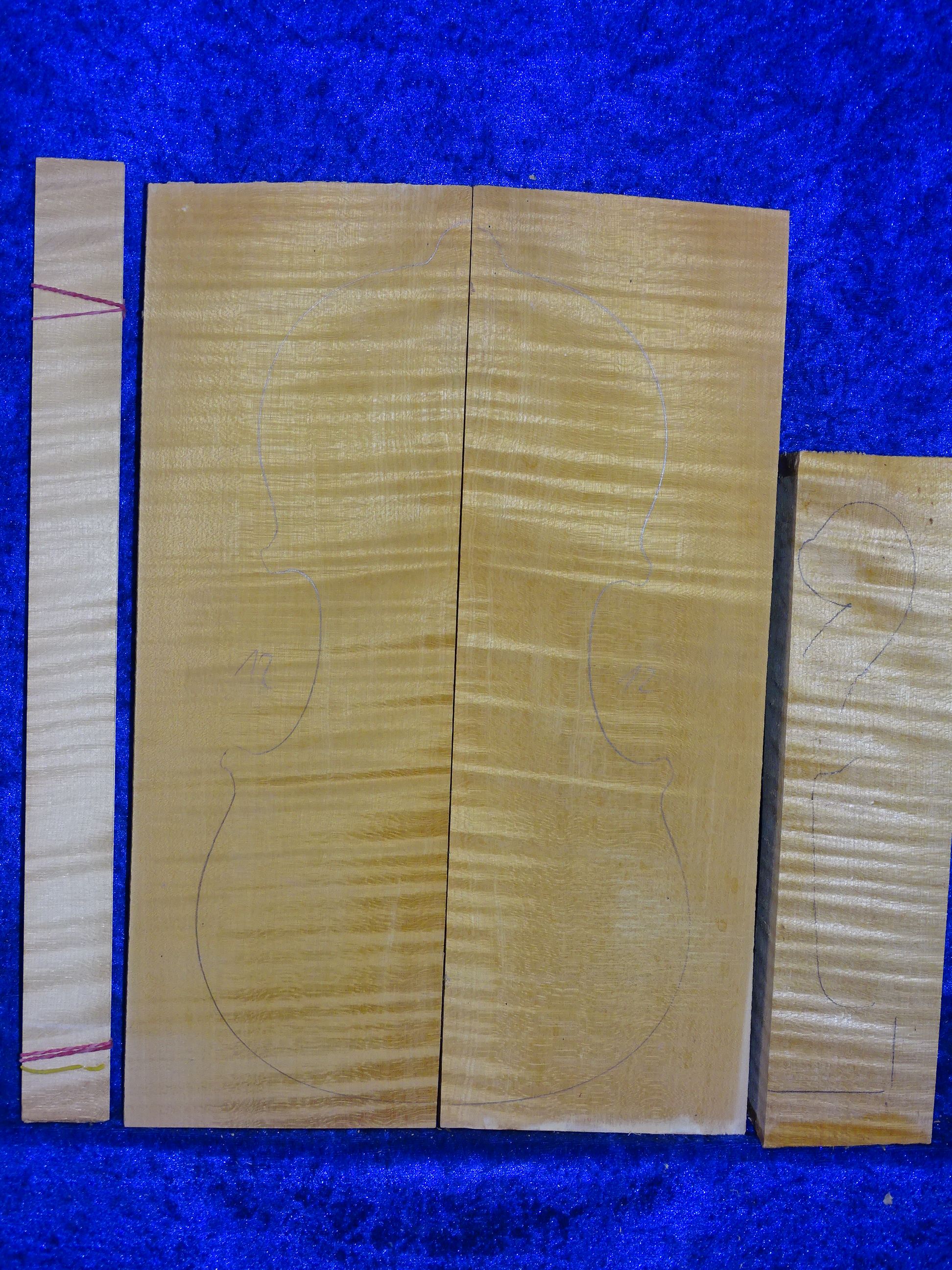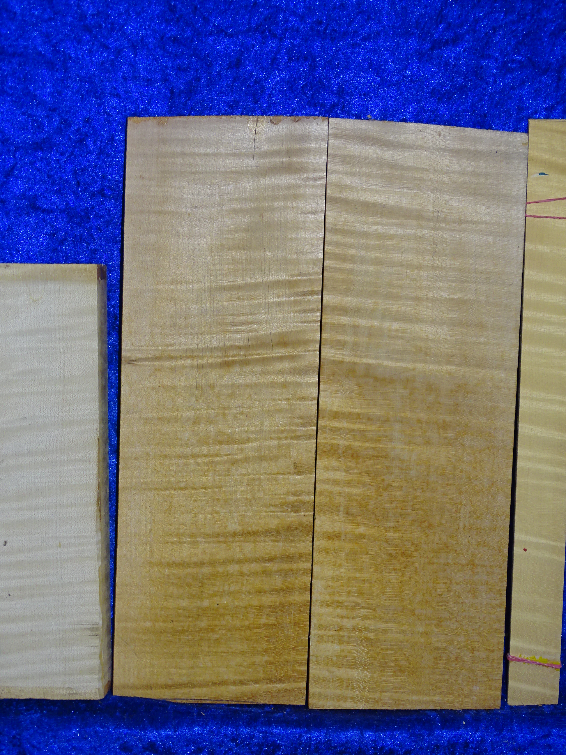 Very nice flamed bosnian maple for 4/4 violin, approx. each 40 cm x 13,5 cm x 2,3 -1,5 cm, very narrow years, from high area, best cutting for violin! From 2010, very nice wood!!!